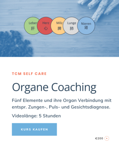 Im 5 Organe Coaching lernst du die Fünf Elemente der TCM und ihre Organe kennen – ergänzt durch Zungen-, Puls- und Gesichtsdiagnose.